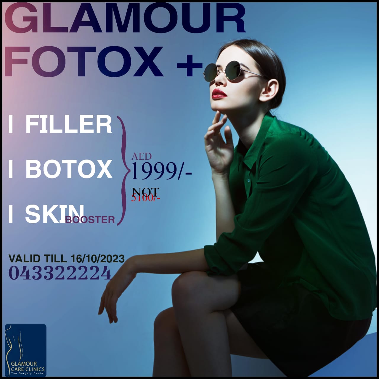 - Offer includes 1 area of Botox (up to 30 units), 1 filling filler, and 1 skin booster treatment.